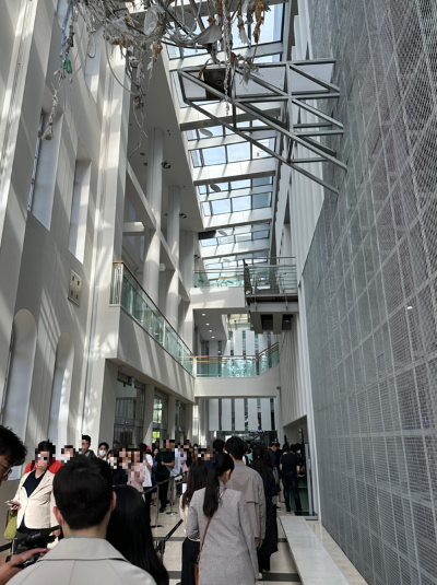처음에 입장을 동시에 하기 때문에 사람들이 우르르 몰려서 들어가서 2층의 작품 관람 대기 줄이 깁니다. 순서대로 관람을 해도 되지만, 처음에는 붐비기 때문에, 다른 층을 먼저 관람하는 것도 가능합니다.