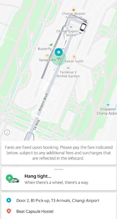 싱가포르에서 그랩을 사용할 때는 아무 데서 부르기보다 정해진 위치에서 부르는 것이 좋습니다. 호텔 이름이나, 그랩을 이용할 수 있는 곳을 출발지로 선택하는 것을 추천합니다.