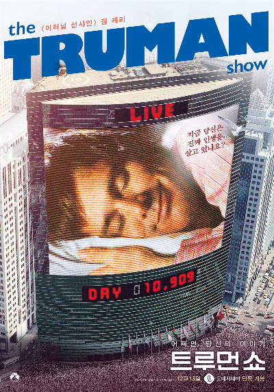 매스 미디어를 다룬 영화도 한 번 살펴봐야겠죠. 정말 유명하기도 한데, 매스 미디어에 대해서 많은 것을 생각하게 만드는 영화인 "트루먼 쇼"입니다.